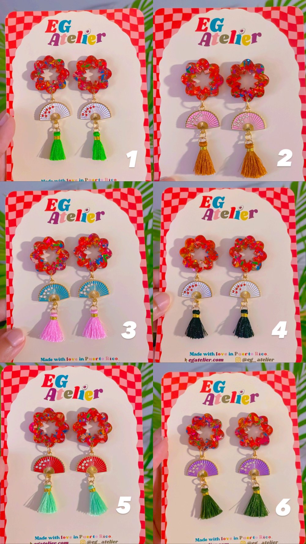 Acrylic Flower, enamel fan, tassel