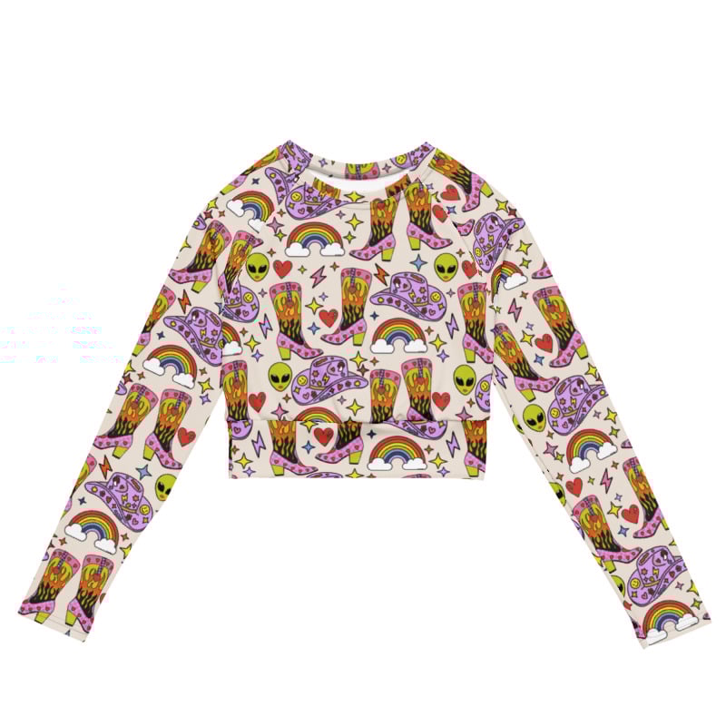 Take this top to the gym, to the beach or dress it up for a unique look all while being protected from the sun’s UV rays! She’s super soft to the touch and extra comfy. Plus, she won’t lose color with the washes. Each garment is stamped by sublimation, cut and hand sewn by hand. Let’s not forget it’s ARTSY AF